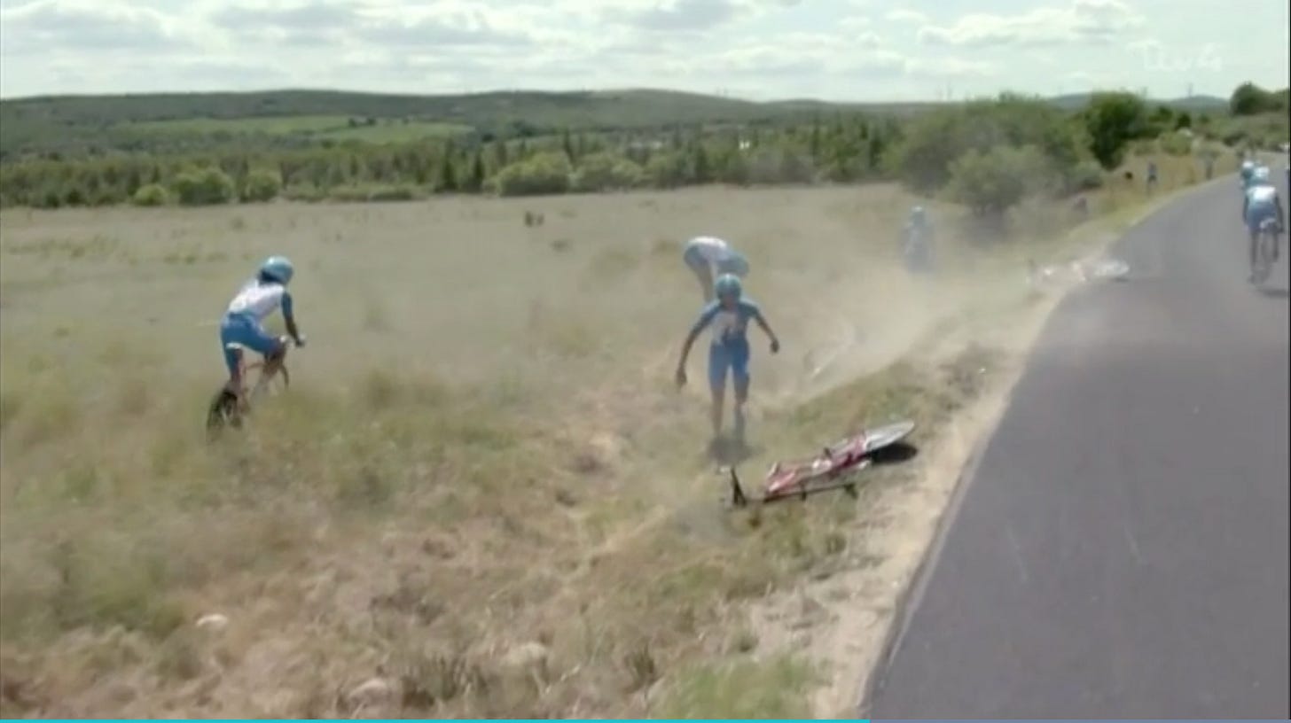 One of the most memorable in recent years was BBox Bweeg Telecom at the 2010 Tour de France when most of them wiped out into a field.